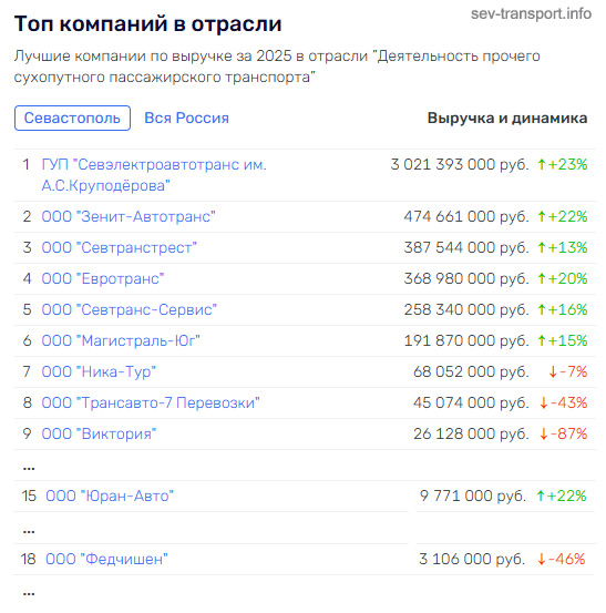 Статистика (выборка) по экономическим показателям севастопольских компаний-перевозчиков за 2025 год.